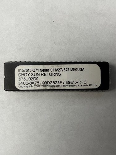 Bios Rom For Aristocrat Technologies, Game Name: Choy Sun Returns, Part Numbers: 0152615-U71, Series 01, M27v322, MK6USA, 3P3U92D0, 34C0-8A75 / 03D2B232F / E9E2AD4C