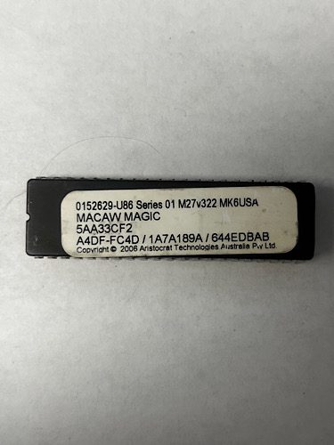 Bios Rom For Aristocrat Technologies, Game Name: Macaw Magic, Part Numbers: 0152629-U86, Series 01, M27v322, MK6USA, 5AA33CF2, A4DF-FC4D / 1A7A189A / 644EDBAB