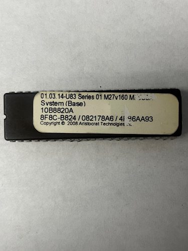 System(Base) Bios Rom For Aristocrat Technologies, Part Numbers: 01.03.14-U83, Series 01, M27v322, MK6USA, 10B8820A, 8F8C-B824 / 082178A6 / 4FB6AA93