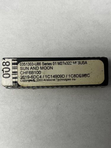 Bios Rom For Aristocrat Technologies Inc., Game Name: Sun And Moon, Part Numbers: 0351303-U86, Series 01, M27v322, MK6USA, CHF6B100, 2619-6DC4 / 1C14909D / 1C8DE9BC