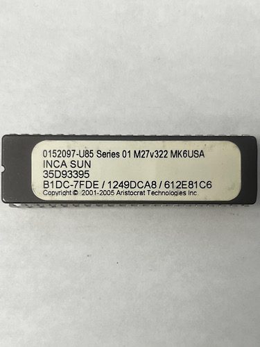 Bios Rom For Aristocrat Technologies Inc., Game Name: Inca Sun, Part numbers: 0152097-U85, Series 01, M27v322, MK6USA, 35D93395, B1DC-7FDE, 1249DCA8, 612E81C6