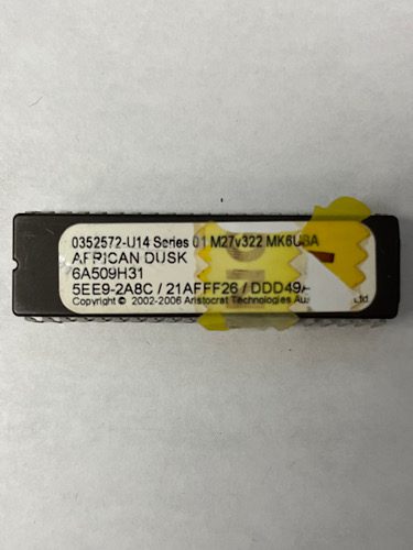 BIOS ROM SET For Aristocrat Technologies Inc., Game Name: African Dusk, Part Numbers: 0352572-U14, Series: 01, M27v322, MK6USA, 6A509H31, 5EE9-2A8C, 21AFFF26, DDD49A