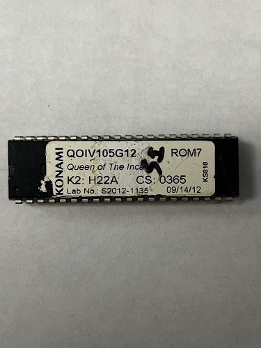 BIOS Rom For Konami Games, Game Name: Queen Of The Inca, Part Numbers: QOIV105G12, K2: H22A, CS: 0365, Lab No: S2012-1135
