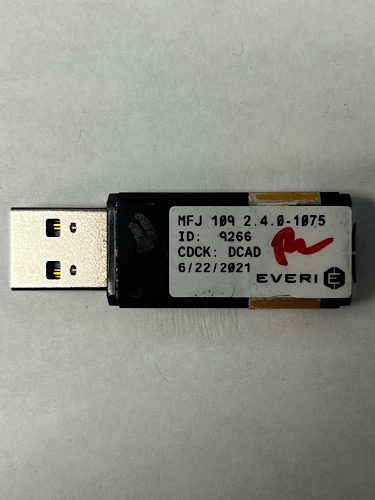 Dongle For Everi Games, Part Number: MFJ, 109, 2.4.0-1075, ID: 9266, CDCK: DCAD, GETT Part Number: DNG-EVE-108
