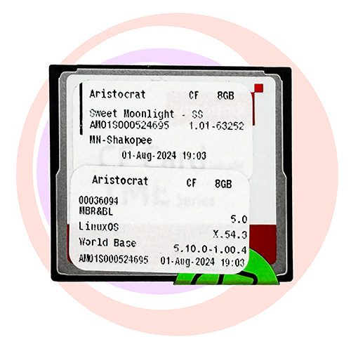 Game Software For Aristocrat Technologies Inc., Game Name: Sweet Moonlight, Part Numbers: 00036094, 5.0 X.54.3, 5.10.0-1.00.4, Operating System #: 1.01-36252, GETT Part SFT-ARI-154