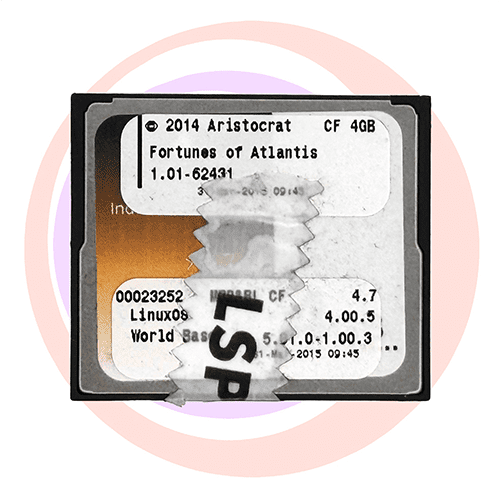 Game Software for Aristocrat Technologies Inc., Game Name: Fortunes of Atlantis, Part Numbers: 00023252, 4.7, 4.00.5, 5.01.0-1.00.3, Operating System #1.01-62431.