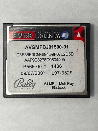 Game Software for alpha 1, Game name: Multi-Play Blackjack, Part Numbers: AVGMPBJ01500-01, C3E38E3C5E694D9F0762D5D, AAF9C8268D9804405, B56F78A1, 1436, L07-3529