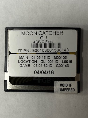 Game Software for Gaming Labs International(GLI), Game Name: MOON CATCHER, Part Numbers: IT PN: 900103001500143, MAIN – 04.09.13, LOCATION – GLI001, GAME – 01.01.52, GETT Part Number: SFT-GLI-102