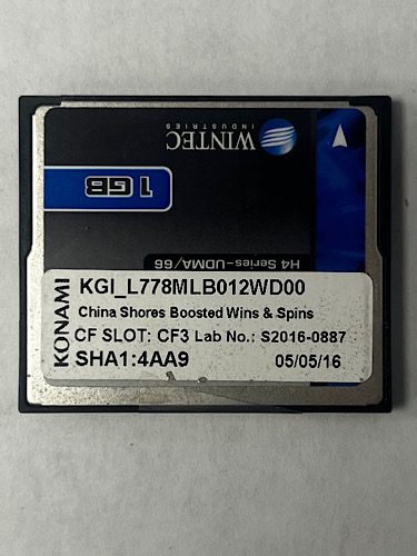 Game Software for Konami, Game Name: China Shores Boosted Wins And Spins, Part Number: SHA1:4AA9, Lab No: S2016-0887