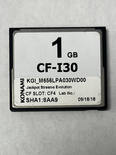 Game Software For Konami Games, Game Name: Jackpot Streams Evolution, Part Numbers: SHA1: 8AA9, Lab No: S2017-0801