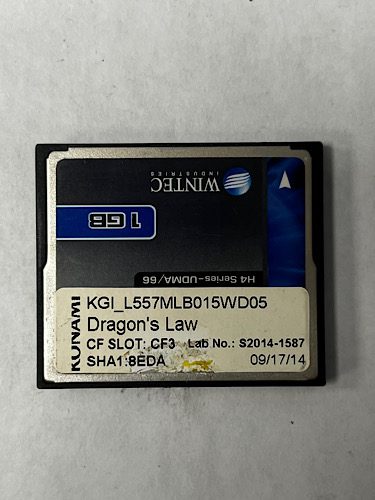 Game Software For Konami Games, Game Name: Dragon’s Law, Part Numbers: KGI_L557MLB015WD05, SHA1:8EDA, Lab No: S2014-1587