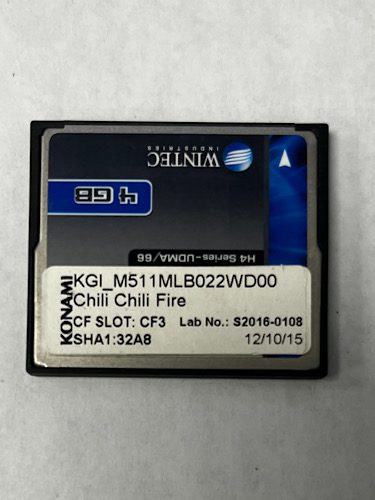 Game Software For Konami Games, Game Name: Chili Chili Fire, Part Numbers: KGI_M511MLB022WD00, SHA1:32A8, Lab No: S2016-0108
