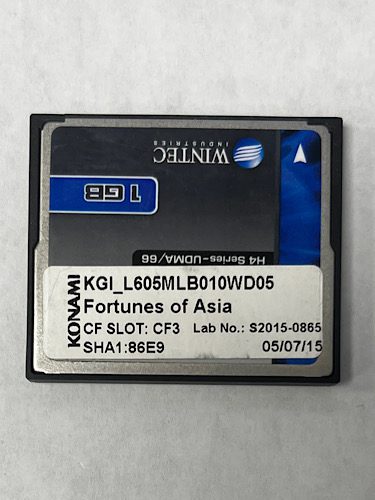 Game Software For Konami Games, Game Name: Fortunes Of Asia, Part Numbers: KGI_L605MLB010WD05, SHA1:86E9, Lab No: S2015-0865