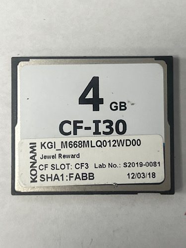 Game Software For Konami Games, Game Name: Jewel Reward, Part Numbers: KGI_M668MLQ012WD00, SHA1: FABB, Lab No: S2019-0081