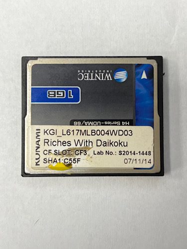 Game Software For Konami, Game Name: Riches with Daikoku, Part Numbers: KGI-L617MLB004WD03, SHA1:C55F, Lab No: S2014-1448