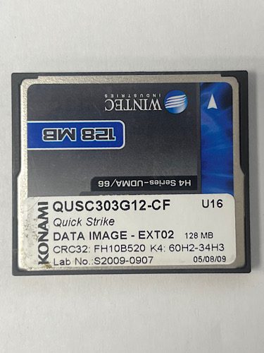 Game Software for Konami Games, Game Name: Quick Strike, Part Numbers: QUSC303G12-CF, U16, DATA IMAGE – EXT02, CRC32: FH10B520, K4: 60H2-34H3, Lab No: S2009-0907