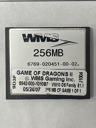 Game Software for WMS BBI, Game Of Dragons II, Part number: S942-000-1010B7 GETT Part SFT-WMS-123