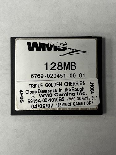Game Software For WMS Gaming INC., Triple Golden Cherries(Clone: Diamonds in The Rough), Part Numbers: S915A-00-1010B5, V1010, OS Family #: E1.1, GETT Part Number: SFT-WMS-265