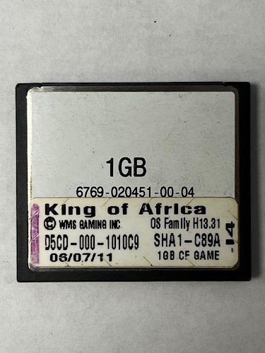 Game Software For WMS Gaming Inc., Blue Bird 2, Game Name: King Of Africa, Part Numbers: D5CD-000-1010C9, SHA1 – C89A, OS Family #: H13.31